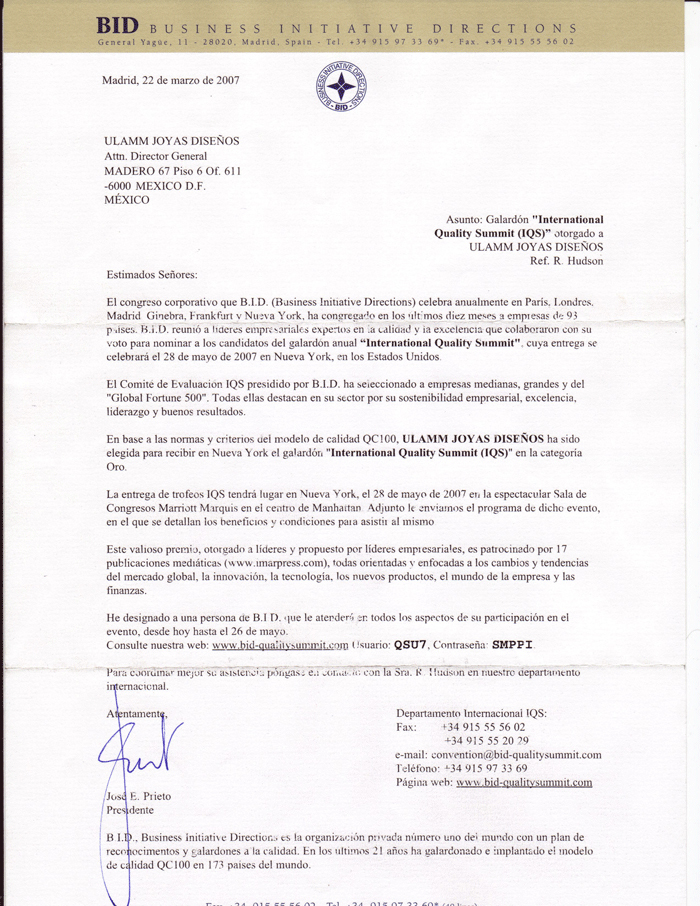 Las joyas para él comunican actitud positiva y confianza plena, entre quienes las portan y quienes las admiran, convirtiendo sus objetos creativos en testimoniales de emociones que la gente reconoce. Alberto Portilla es un representante de la creación en la orfebrería mexicana, el diseño y la comunicación, acerca lo lejano en esta dinámica globalizadora, unifica criterios en la diversidad siendo un ícono de la joyería moderna para el mundo. Alberto Portilla, ha sido Galardonado en el año 2007, con el premio Internacional Quality Summit categoría oro en New York y en España en el 2008, estos premios son otorgados con base a las normas y criterios del modelo de calidad QC100 por su creatividad y excelencia en el diseño de anillo de compromiso. La calidad y la exclusividad de sus trabajos, nos han brindado grandes relaciones comerciales a nivel internacional, por lo que ahora ofrecemos en todos nuestros Anillos de Compromiso, la única y más fina gama de diamantes con un corte y simetría perfectos, logrando así el efecto visual del momento Hearts & Arrows.